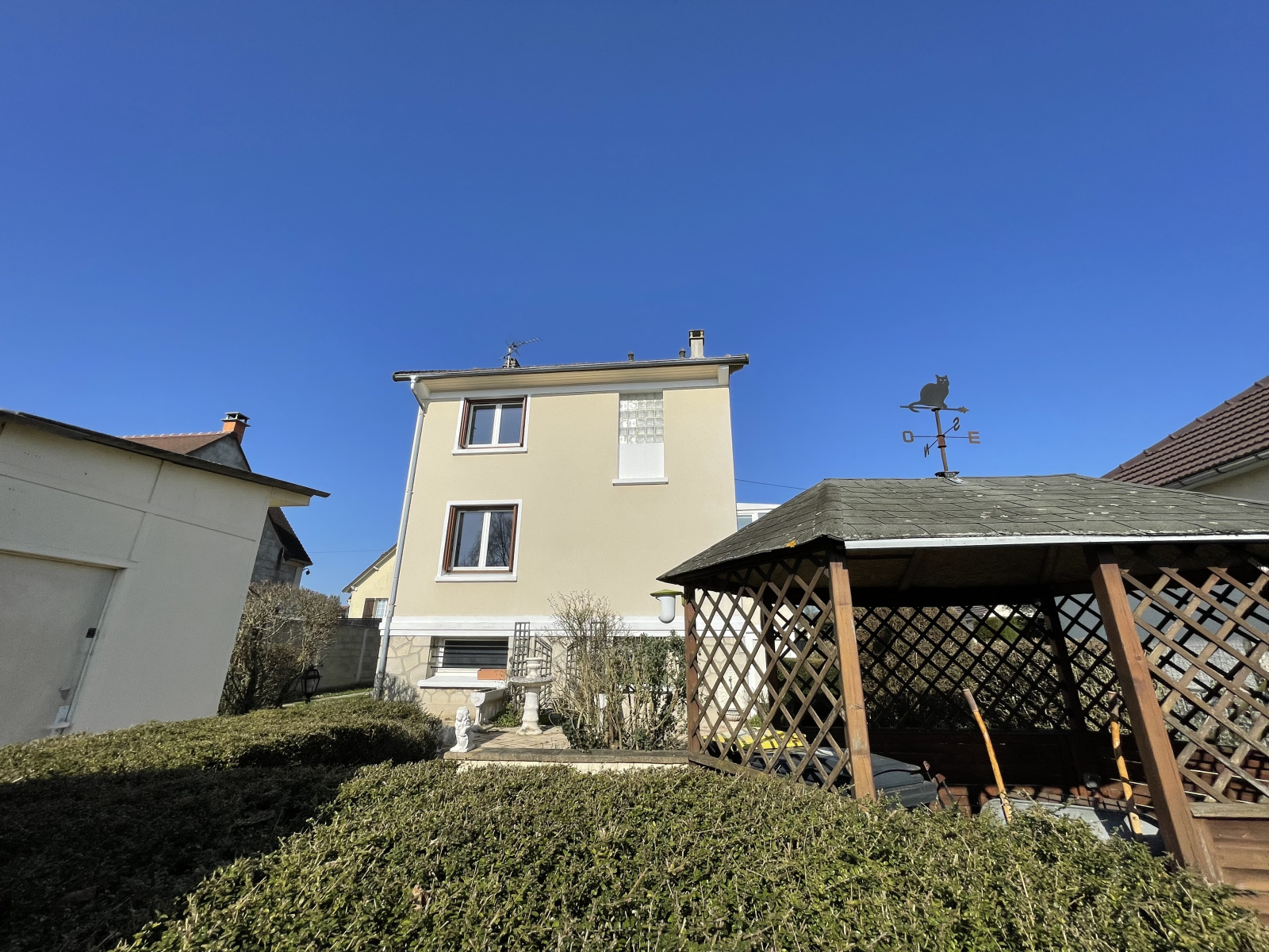Dans un quartier calme d'OSNY, proche des Ecoles, des Commerces et du Parc de Grouchy, MAISON INDIVIDUELLE avec sous-sol total (Buanderie, garage, pièce rangement) comprenant: entrée, cuisine équipée, salon avec cheminée, wc. A l'étage: palier, 3 chambres, salle de douches avec wc. Grenier. Beau terrain de 450 m² clos sans vis à vis plein sud. Cabanon de jardin de 15 m². Possibilité de garer 3/4 voitures sur terrain. Bon Etat Général. A VOIR!